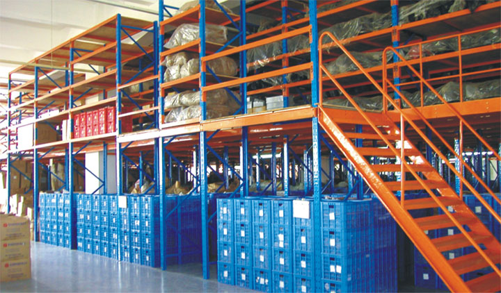 阁楼式货架广泛应用于库房较高、货物较小、人工存取、存储量较大的情况下,可充分利用空间,节约库房面积。根据实际场地和具体要求,可设计成单层或多层阁楼,一般为2-3层。特别适用于汽配、电子器件等企业系列产品的分类保存,承载≤500kg/m2。货物至二楼或三楼的运输方式通常有:人工、升降平台、提升机、输送带、叉车等。