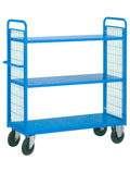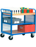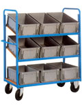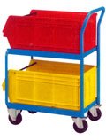 周转车也称为转运车,广泛用于机械、汽车、家电、轻工、电子等生产企业,其合理的设计,优良的品质,适用于工厂物流中的运输、配送、储存、流通加工等环节。周转车也可用于各类仓库、生产现场等多种场合,在物流管理越来越被广大企业重视的今天,周转车帮助完成生产物品存放的通用化、一体化管理,是生产企业进行现代化管理的必备品。