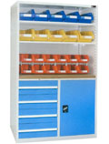 置物柜(也叫储物柜),置物柜是一种放置物品的全封闭式的金属储物器具,适用于仓库、车间和生产办公场所,存放工具、量具、零配件、仪器仪表和图纸资料等相关物品物料。配合零件盒、挂板、抽屉等配件可进一步增加置物柜的储存功能。多台置物柜可以组成车间局部隔断,达到既能分隔空间又能存储物品的高效利用空间的目的。 置物柜是一个多功能的存储设备,可根据客户的需求进行不同的设置,加装不同的配件,样式、规格可根据作业现场、实际需要非标设计、定制。置物柜具有一些很明确的特点: 1、置物柜一般用于多样小型物料的整理和摆放; 2、能够为企业节省空间,一目了然; 3、可供选择的配件有很多,规格和样式都是多种多样的; 4、适用于组装工位: 门:根据不同使用环境可选择一般铁门型(门内侧可配方孔挂板或百叶挂板)、玻璃门,当空间受限也可采用移门。 抽屉:可放置于柜体,可选择承重80kg或150kg的抽屉。 层板:一般情况下承重100kg/层,根据柜内状况可以配置层板数量,高度可调节。 柜内挂板:在柜体背板内侧加装百叶挂板或方孔挂板。 |