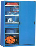 置物柜(也叫储物柜),置物柜是一种放置物品的全封闭式的金属储物器具,适用于仓库、车间和生产办公场所,存放工具、量具、零配件、仪器仪表和图纸资料等相关物品物料。配合零件盒、挂板、抽屉等配件可进一步增加置物柜的储存功能。多台置物柜可以组成车间局部隔断,达到既能分隔空间又能存储物品的高效利用空间的目的。