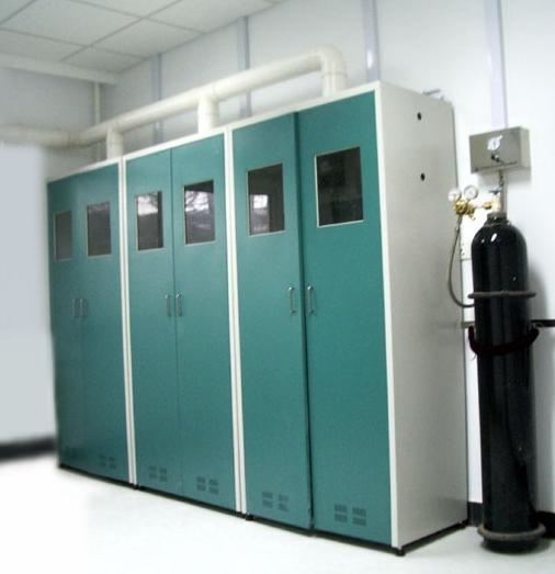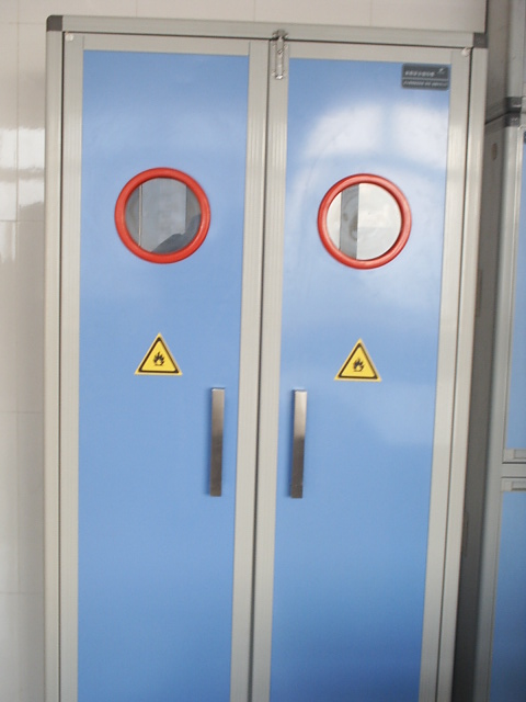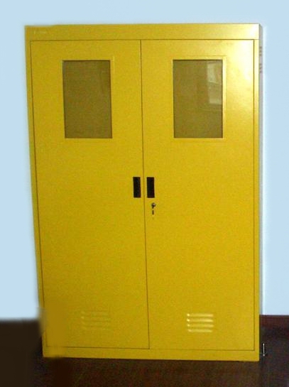 1, 柜体采用1.2mm镀锌钢板折弯焊接制作,外框内嵌5mm安全玻璃透视窗。柜子后背配置钢瓶活动固定架,方便钢瓶移动。可承重100kg。