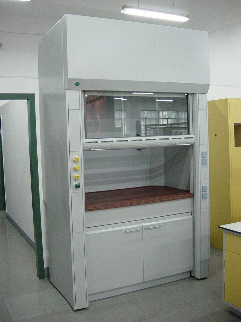 1、 组合柜体:采用上下组合式柜体,上部柜体为通风柜操作空间,并含操作台面、供水、落水等实验需要之附件。下部柜体为储存柜并含照明、供电、抽风等系统控制按钮。