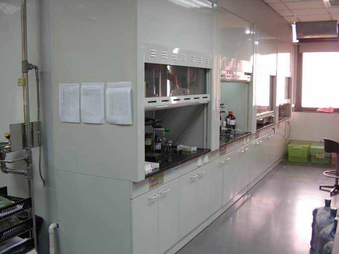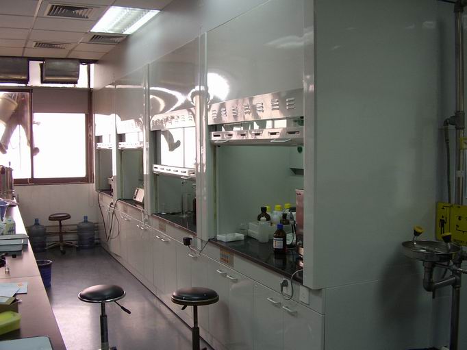 (3)、操作台面说明:操作台面为12.7mm厚实芯理化板制作,边缘加厚成26mm并进行弧形倒角,防止液体外漏台面耐酸碱、耐化学溶剂腐蚀性、耐磨性极佳,无毒,使用寿命长