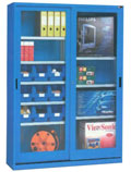 置物柜(也叫储物柜),置物柜是一种放置物品的全封闭式的金属储物器具,适用于仓库、车间和生产办公场所,存放工具、量具、零配件、仪器仪表和图纸资料等相关物品物料。配合零件盒、挂板、抽屉等配件可进一步增加置物柜的储存功能。多台置物柜可以组成车间局部隔断,达到既能分隔空间又能存储物品的高效利用空间的目的。